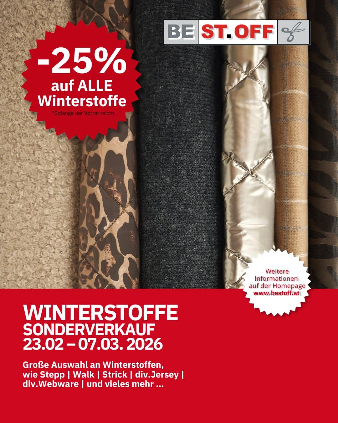 Große Auswahl an Winterstoffen, wie Stepp | Walk | Strick | div.Jersey | div.Webware | und vieles mehr …