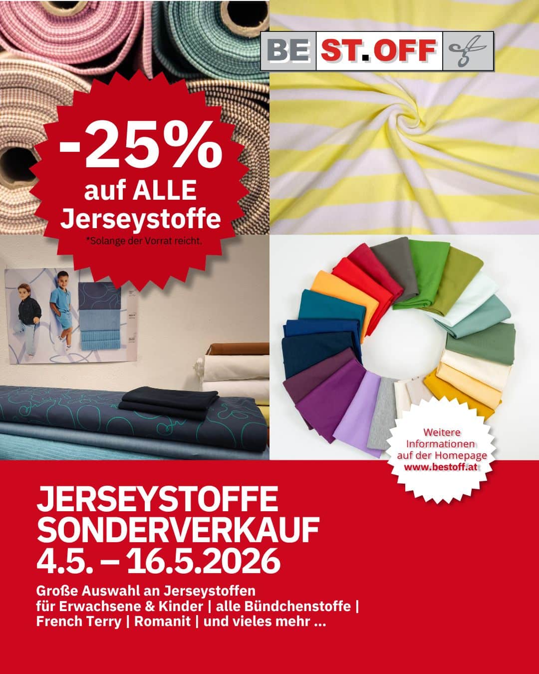 Willkommen bei BEST.OFF, deinem lokalen Spezialgeschäft für Stoffe und Nähzubehör. Wir glauben, dass Qualität, Nachhaltigkeit und faire Preise Hand in Hand gehen können. Unser vielfältiges Sortiment bietet etwas für jeden Geschmack und Geldbeutel – vom Hobby-Näher bis zum professionellen Designer.